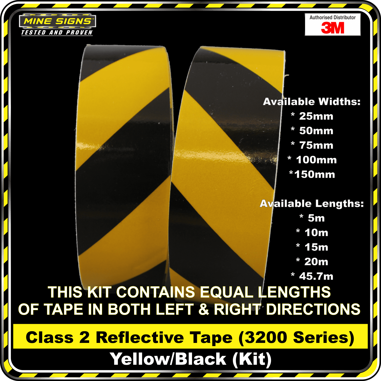 3M Yellow/Black Class 2 (3200 Series) Reflective Tape – KIT